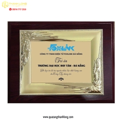- Tấm kim loại: Mạ vàng cao cấp, có bề mặt sáng bóng, tạo cảm giác tinh tế và đẳng cấp, phù hợp để vinh danh các cá nhân, tổ chức.