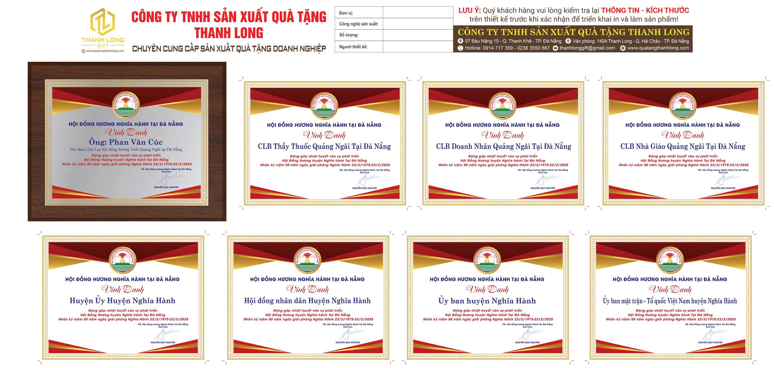 Vui lòng liên hệ với chúng tôi qua SĐT: 0914 717 359 hoặc Email: thanhlonggift@gmail.com ngay hôm nay để đặt hàng và sở hữu Bảng Vinh Danh cao cấp, góp phần tôn vinh những giá trị xứng đáng! Chúng tôi luôn sẵn sàng hỗ trợ bạn trong việc thiết kế và in ấn nội dung theo yêu cầu.
