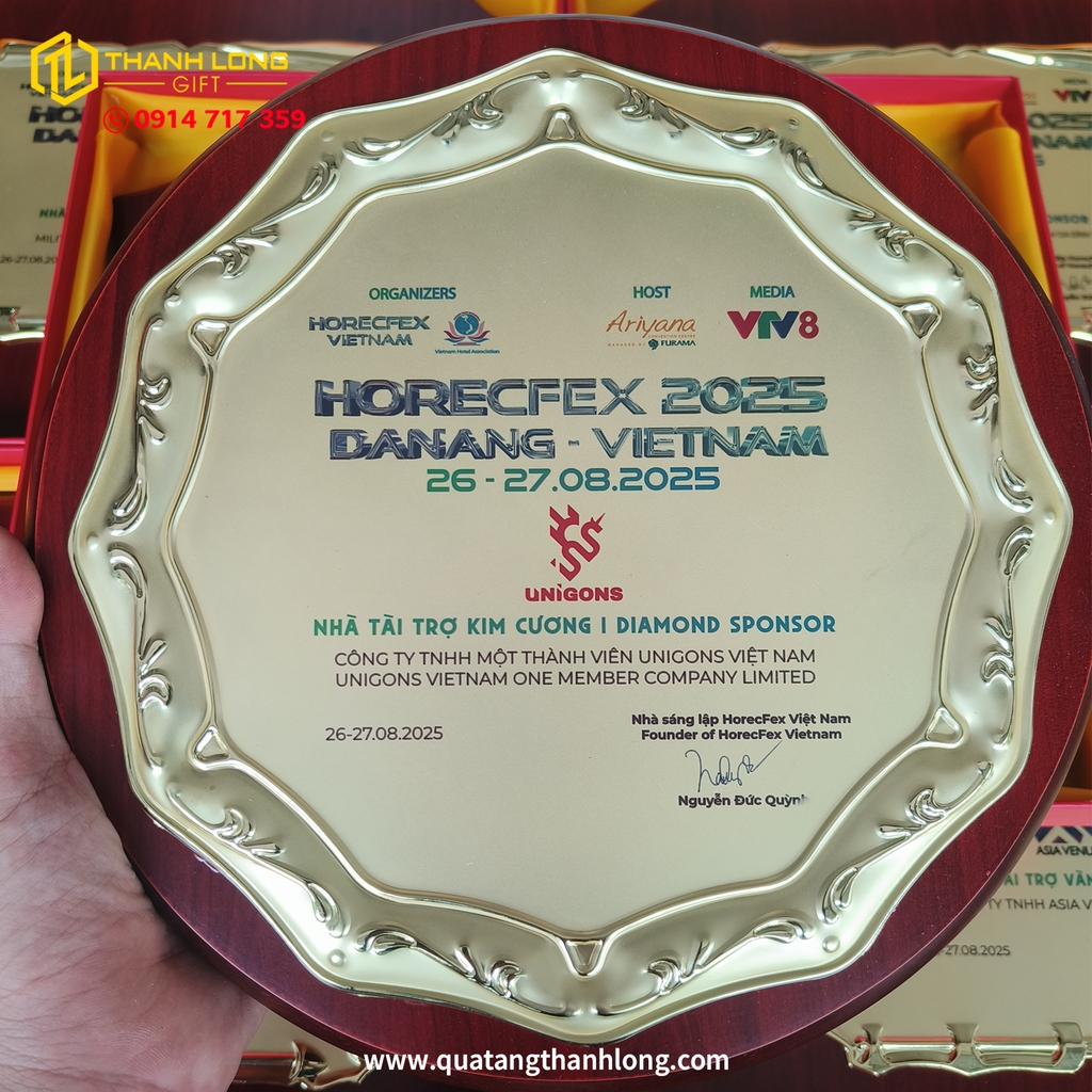 Vui lòng liên hệ với chúng tôi qua SĐT: 0914 717 359 hoặc Email: thanhlonggift@gmail.com ngay hôm nay để đặt hàng và sở hữu Bảng Vinh Danh cao cấp, góp phần tôn vinh những giá trị xứng đáng! Chúng tôi luôn sẵn sàng hỗ trợ bạn trong việc thiết kế và in ấn nội dung theo yêu cầu.