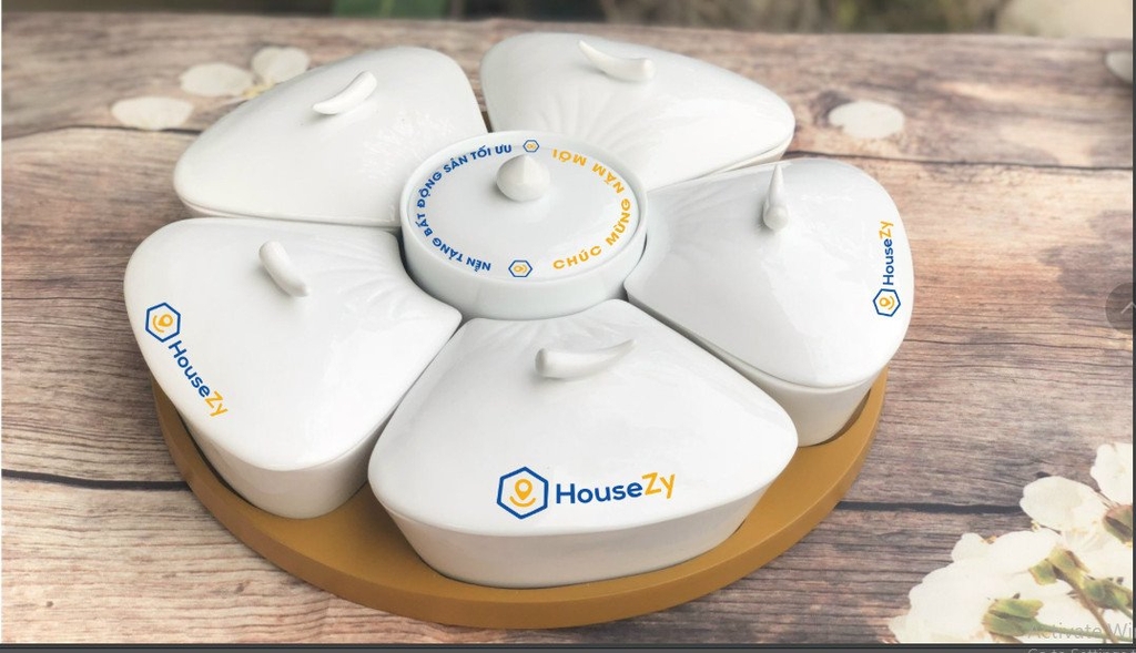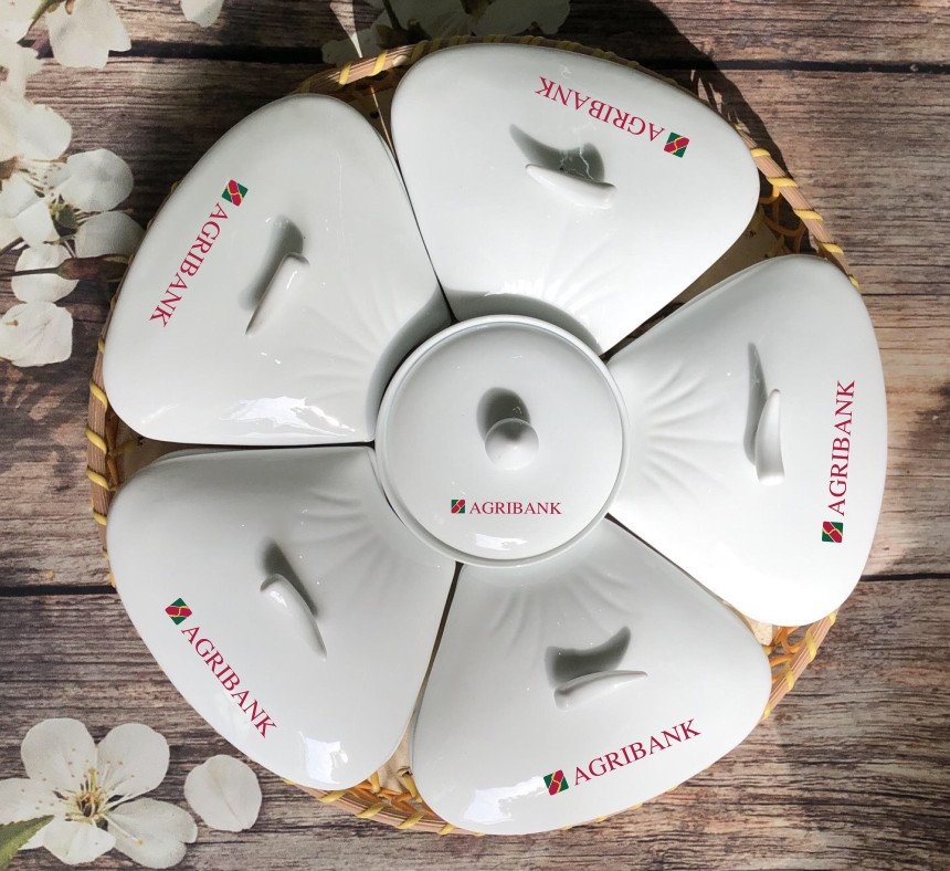 Bộ Khay Sứ Hoa Mai 6 Cánh - In logo đơn vị Agribank