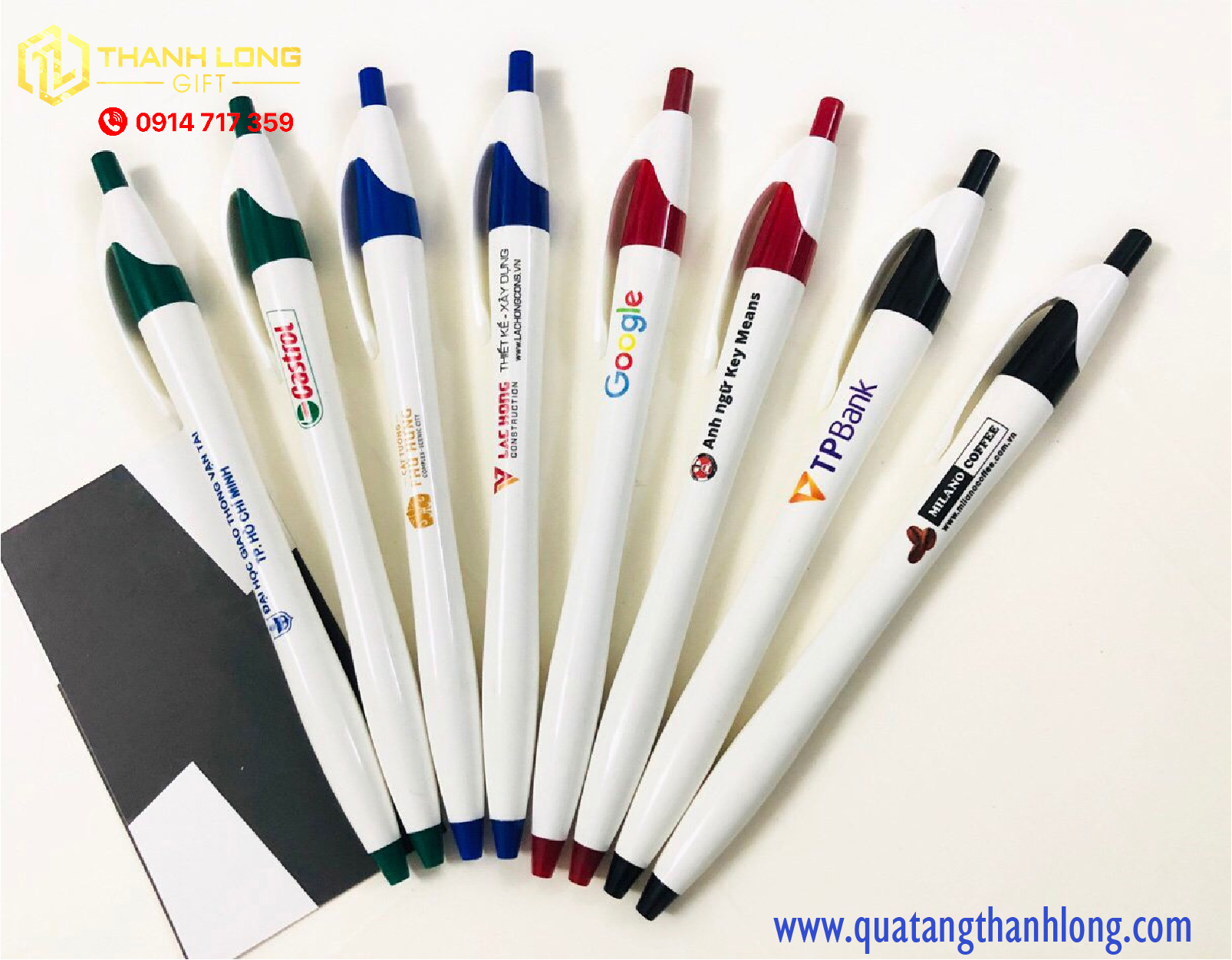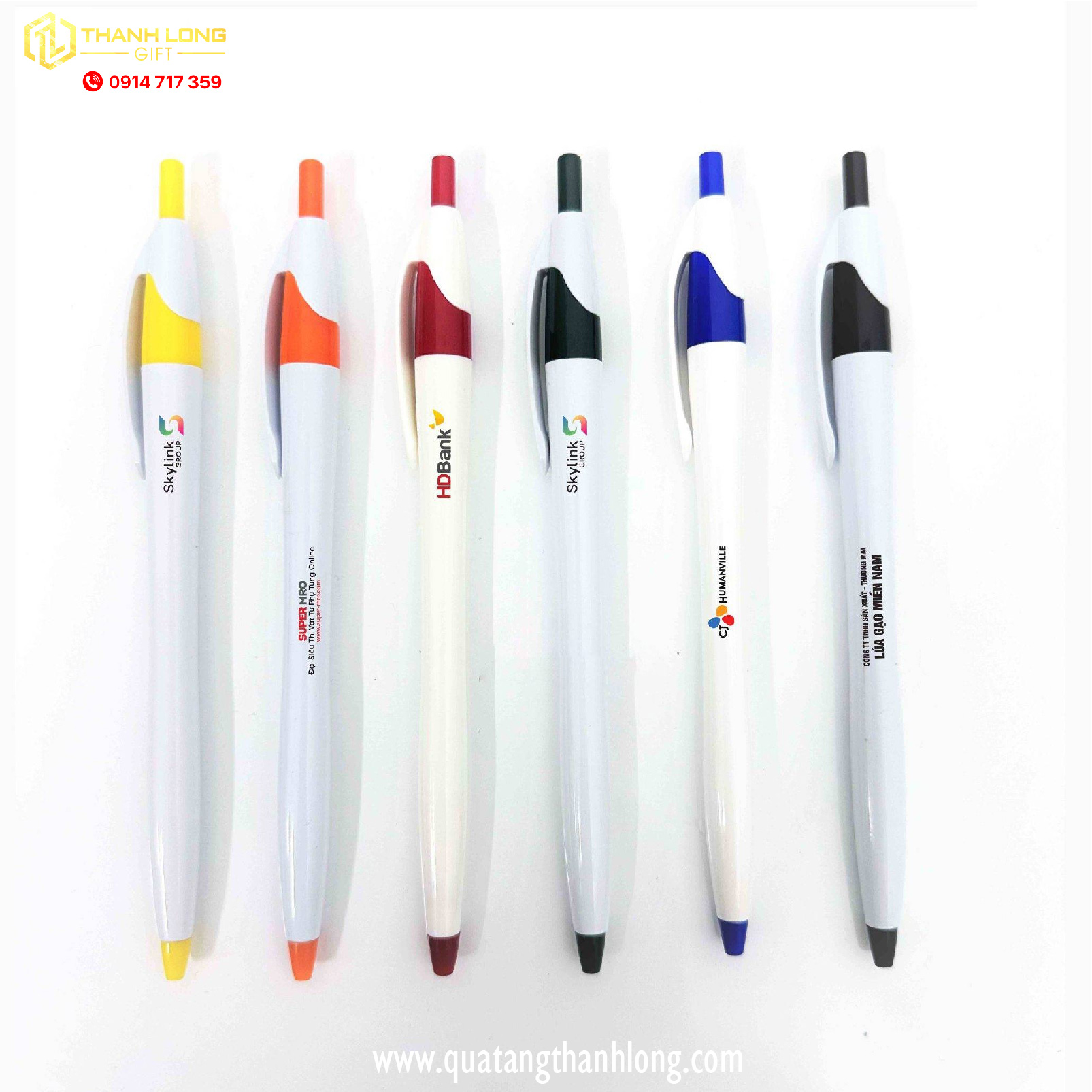| Bút bi nhựa in logo kích thước 14cm x 1cm Bút bấm tiện dụng, đầu bi 0.7mm, ngòi bút viết mượt mà, không lem |