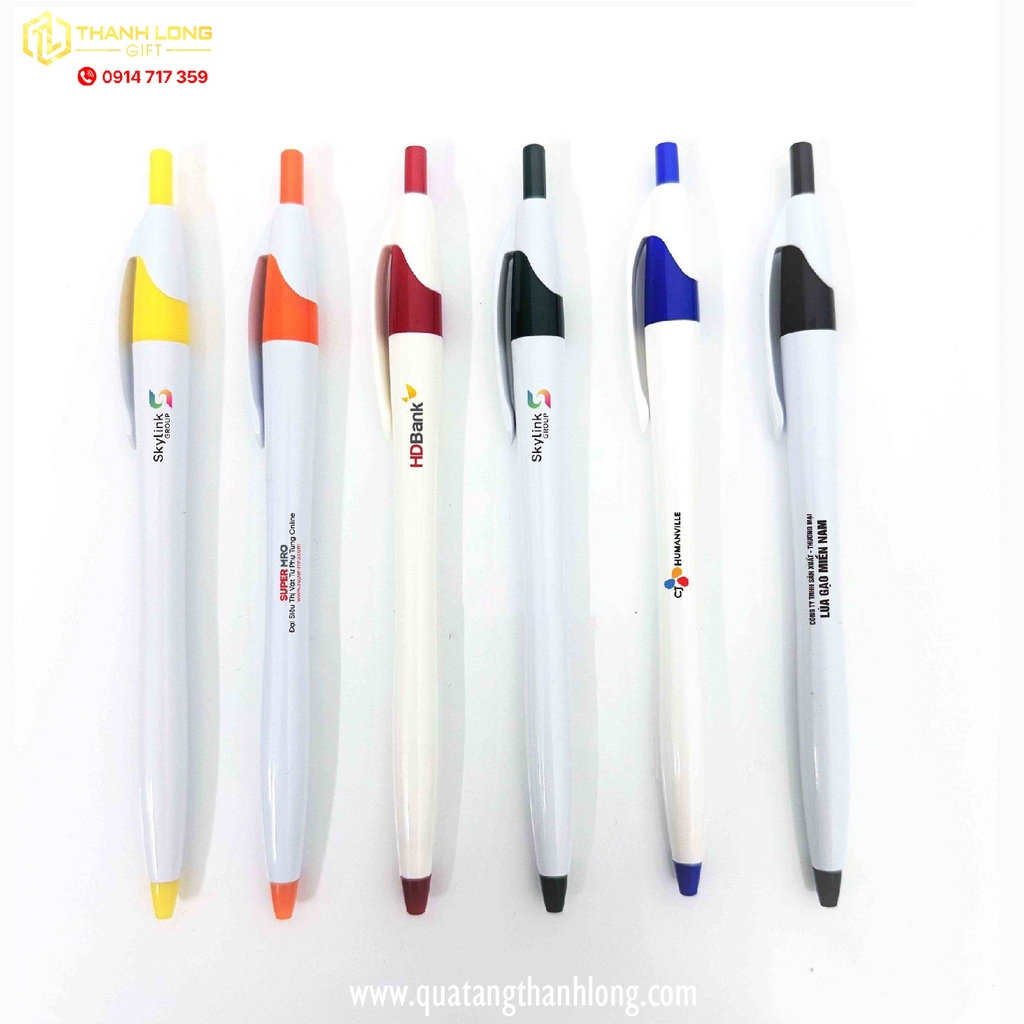 Bút bi nhựa in logo kích thước 14cm x 1cm Bút bấm tiện dụng, đầu bi 0.7mm, ngòi bút viết mượt mà, không lem |