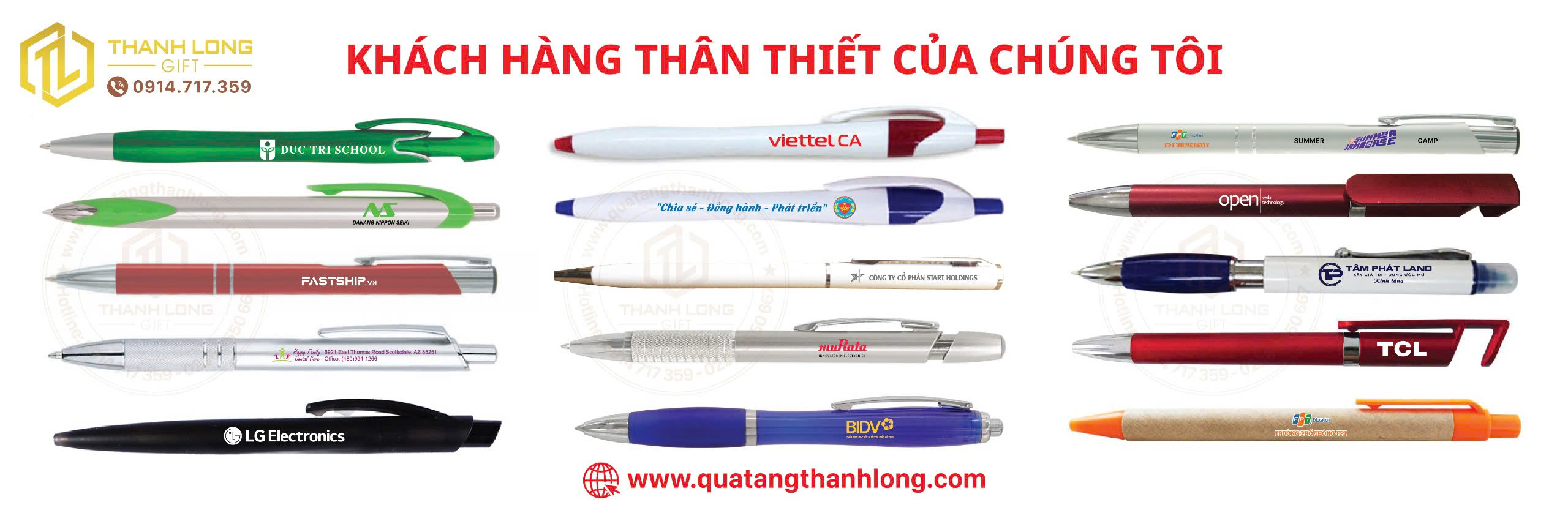 Với sự chủ động trong việc cung cấp nguồn hàng sẵn có và máy móc in ấn, Quà Tặng Thanh Long tự tin mang đến cho khách hàng những giải pháp tốt nhất cho sản phẩm bút bi quà tặng in logo thương hiệu khách hàng. Chúng tôi có thể thực hiện in bút in logo công ty trong thời gian ngắn, đảm bảo chất lượng ổn định và dịch vụ bán hàng uy tín. Với sự cam kết này, chúng tôi hy vọng trở thành đối tác lâu dài và đáng tin cậy của quý doanh nghiệp.