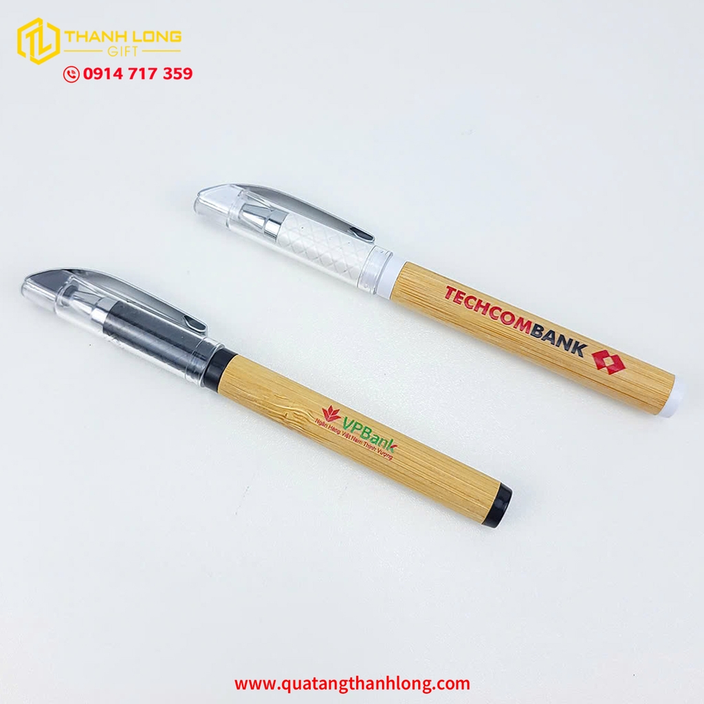 | Bút bi tre BP6116 in logo, kích thước 14.6cm x 1.2cm Bút nắp gài, đầu bi 0.7mm, ngòi bút viết mượt mà, không lem |