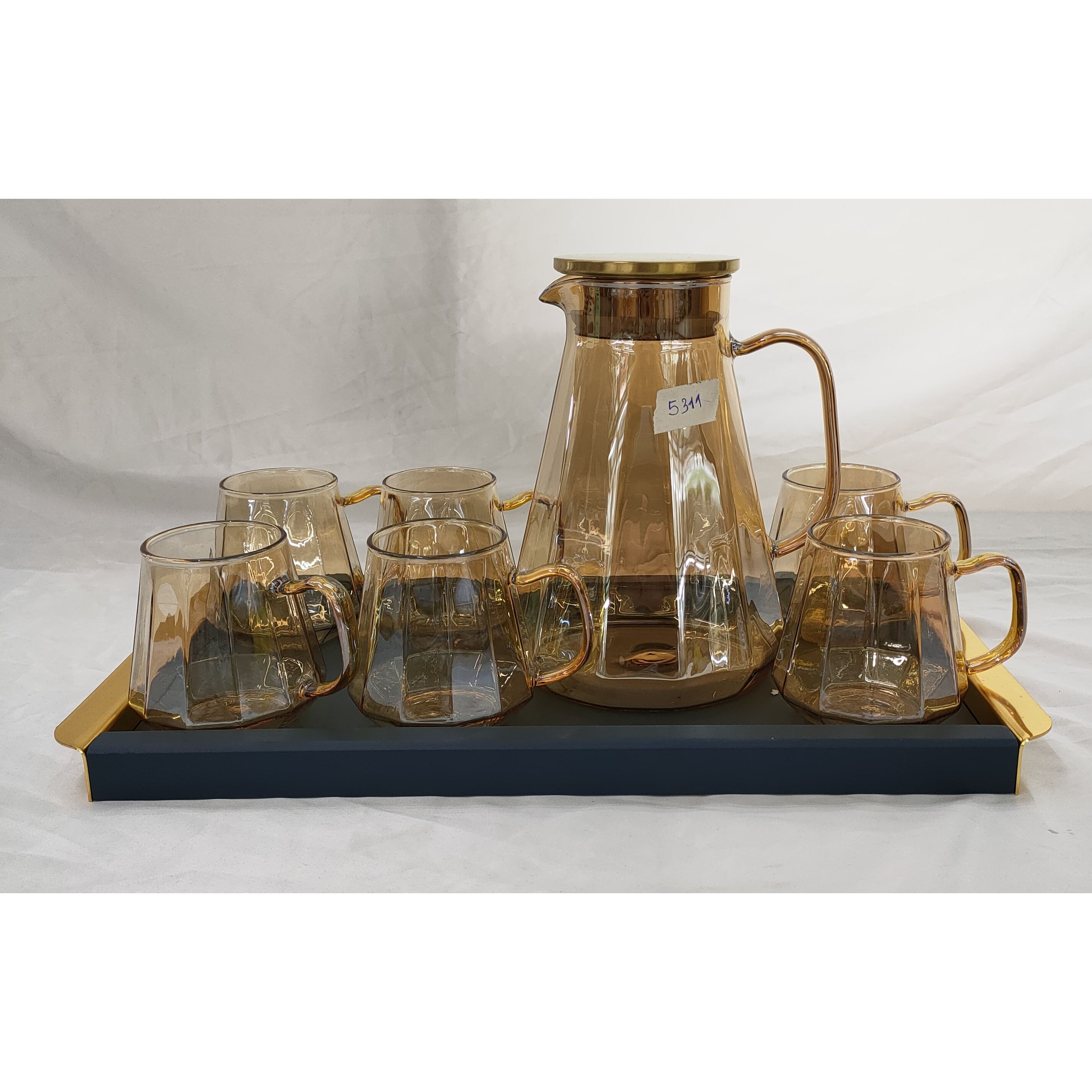 Giới Thiệu Combo Bộ Bình Cốc Thủy Tinh Màu Vàng Vàng Chịu Nhiệt Cao Cấp Vân Kim Cương Không bao gồm khay đựng