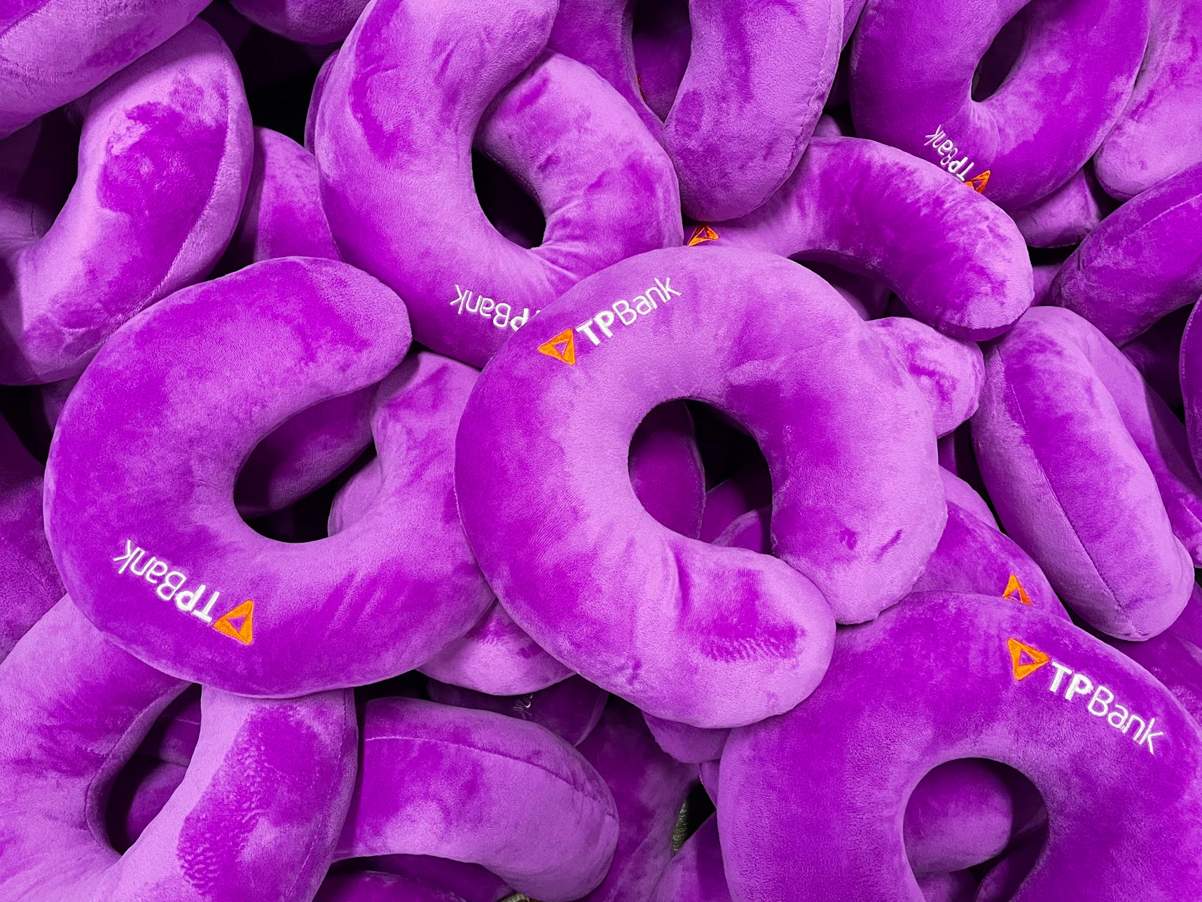 Sản xuất gối tựa cổ ngân hàng TP Bank - thêu logo