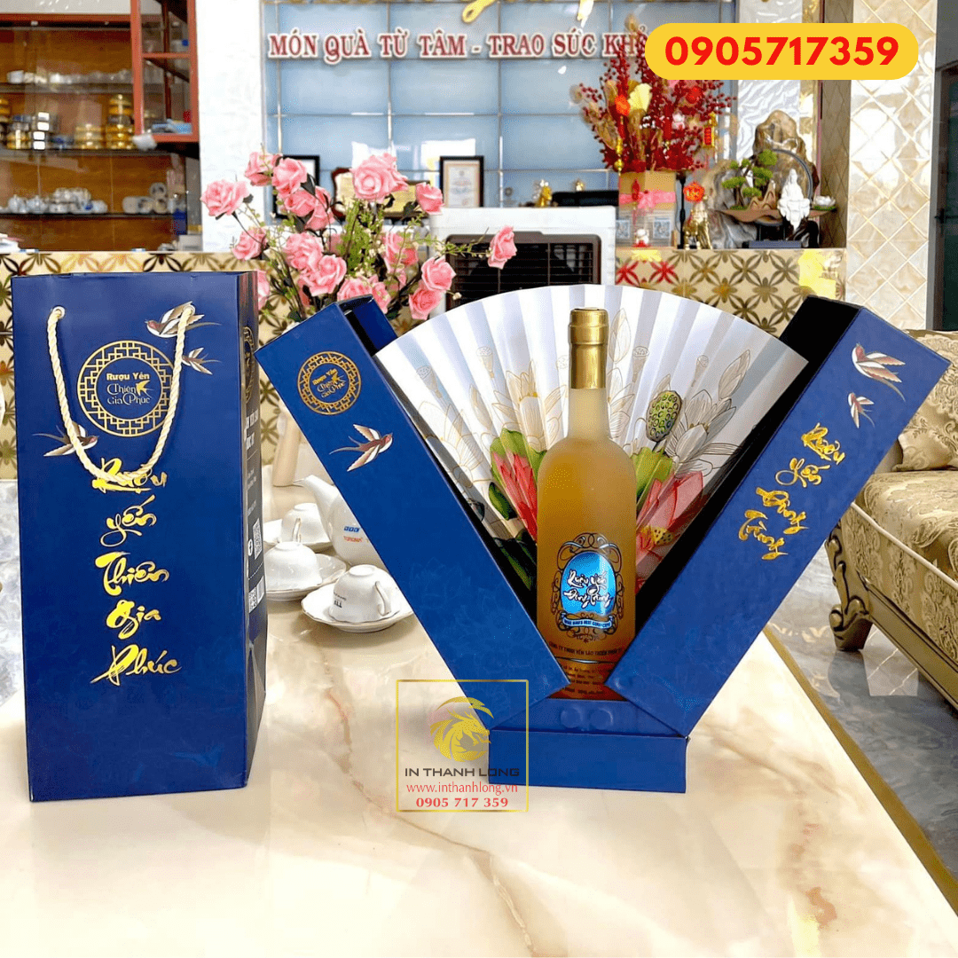 Hộp Rượu Yến Đông Trùng Cao Cấp – Kiểu Nắp Mở Hình Quạt Sang Trọng