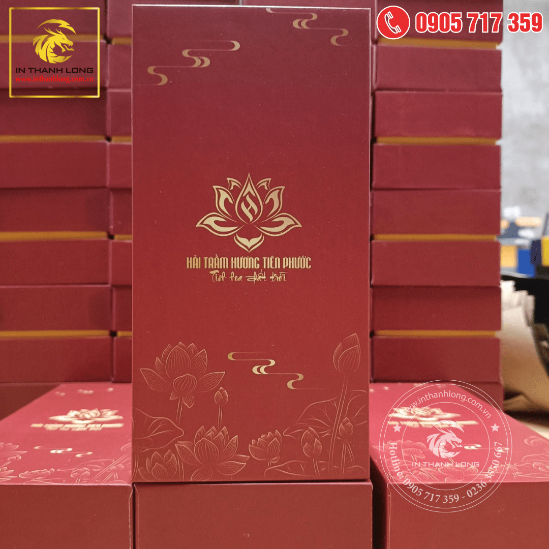 Hộp dựng trầm được làm từ chất liệu giấy chipboard cao cấp, in offset sắc nét, mang đến độ bền cao và tính thẩm mỹ tinh tế. Thiết kế hộp đa dạng với nhiều kiểu dáng sang trọng, giúp bảo quản trầm hương một cách tối ưu.