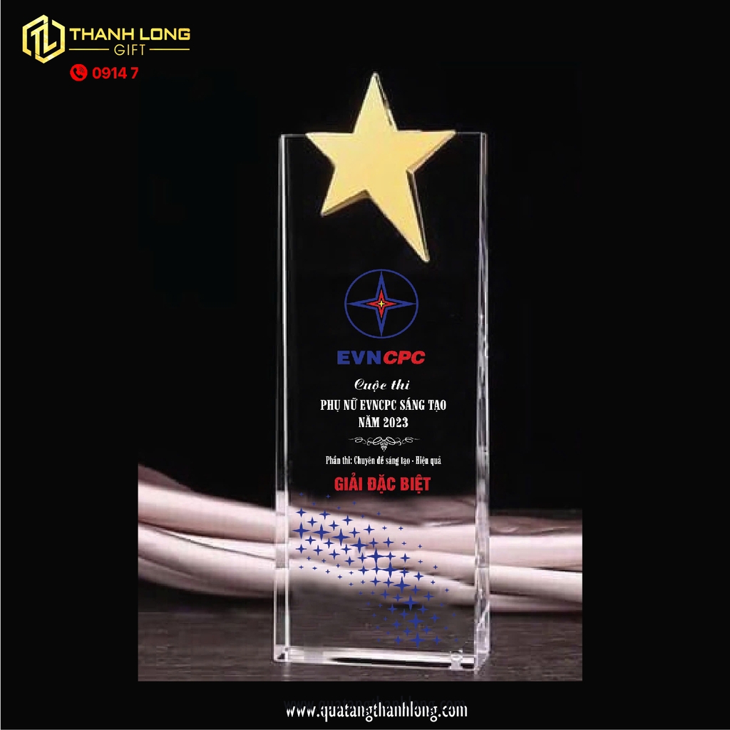 - Bề mặt pha lê trong suốt, cho phép in UV hoặc khắc laser nội dung tùy chỉnh như tên người nhận, chức vụ, thành tích, logo công ty và lời tri ân.