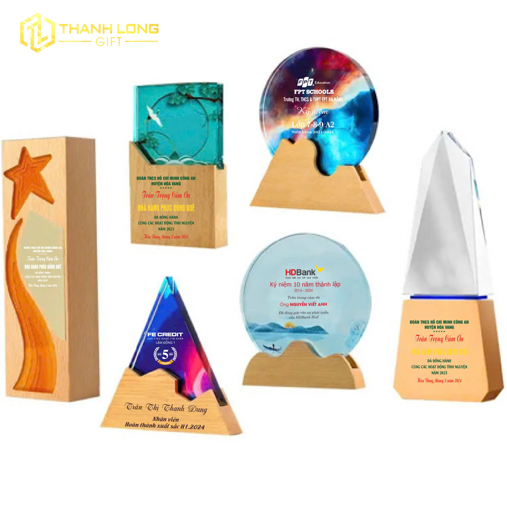 - Bề mặt pha lê trong suốt, cho phép in UV hoặc khắc laser nội dung tùy chỉnh như tên người nhận, chức vụ, thành tích, logo công ty và lời tri ân.