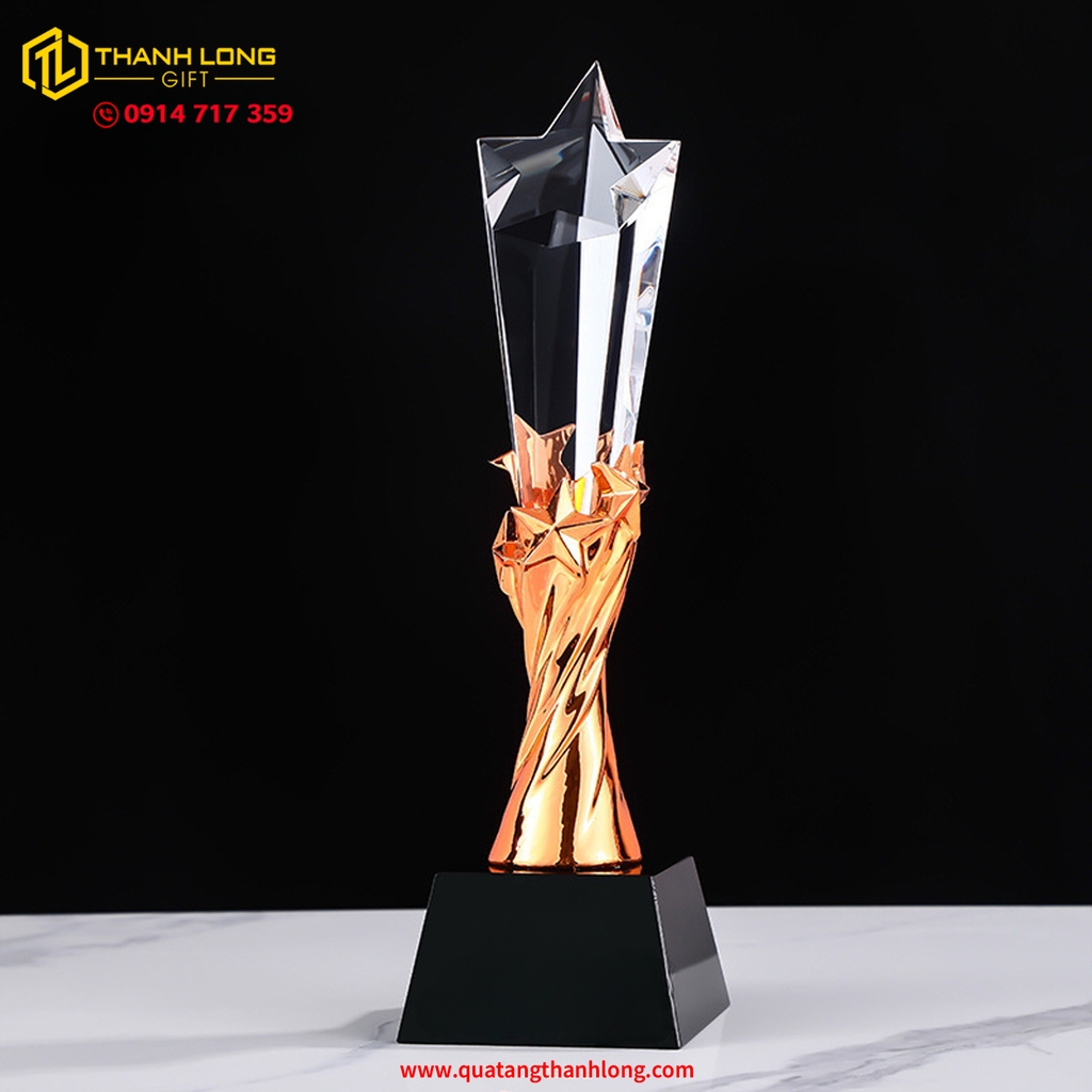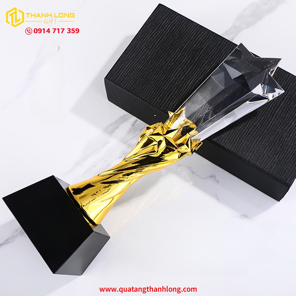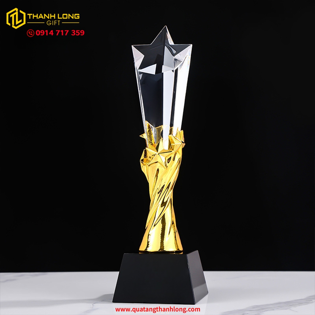 CÚP NGÔI SAO - PHA LÊ ĐẾ ĐEN 3 MÀU (VÀNG - BẠC - ĐỒNG) - In ấn thiết kế theo nội dung yêu cầu của khách hàng