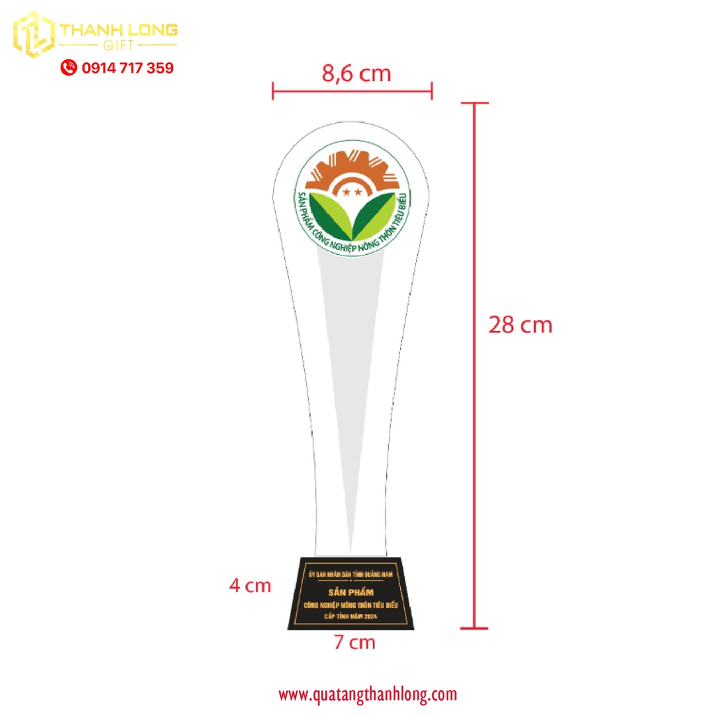 Chất liệu: Pha lê trong suốt, thân cúp liền khối, bề mặt phẳng mịn và sáng bóng.