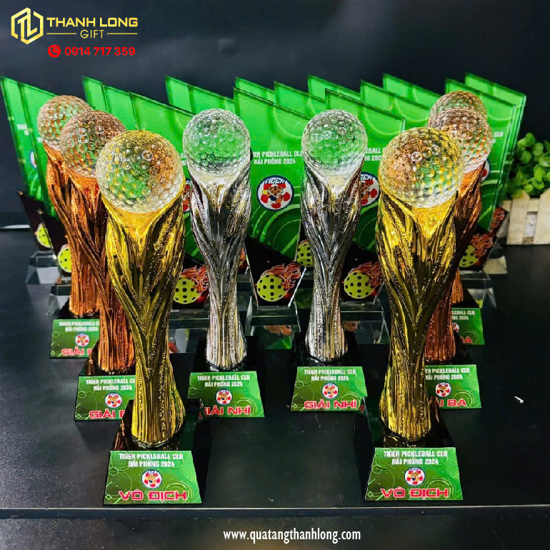 Cúp Giải Pickleball Cao Cấp không chỉ là một phần thưởng, mà còn là một biểu tượng thể hiện sự ghi nhận và tôn vinh. Với chất lượng vượt trội và thiết kế tinh tế, cúp sẽ trở thành kỷ niệm đáng nhớ cho các vận động viên trong suốt sự nghiệp Pickleball của họ. Chúng tôi cam kết mang đến sản phẩm chất lượng cao, đáp ứng mọi yêu cầu khắt khe nhất của khách hàng.