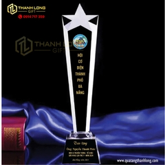 - Bề mặt pha lê trong suốt, cho phép in UV hoặc khắc laser nội dung tùy chỉnh như tên người nhận, chức vụ, thành tích, logo công ty và lời tri ân.