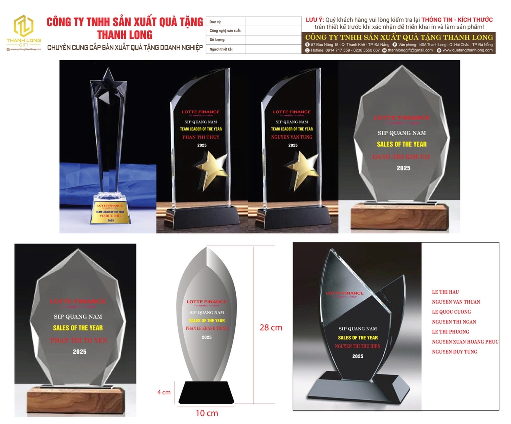 CÚP VINH DANH VÀ BẢNG VINH DANH XU HƯỚNG 2025 - ĐẦU 2026 DẤU ẤN TÔN VINH TẠI QUÀ TẶNG THANH LONG