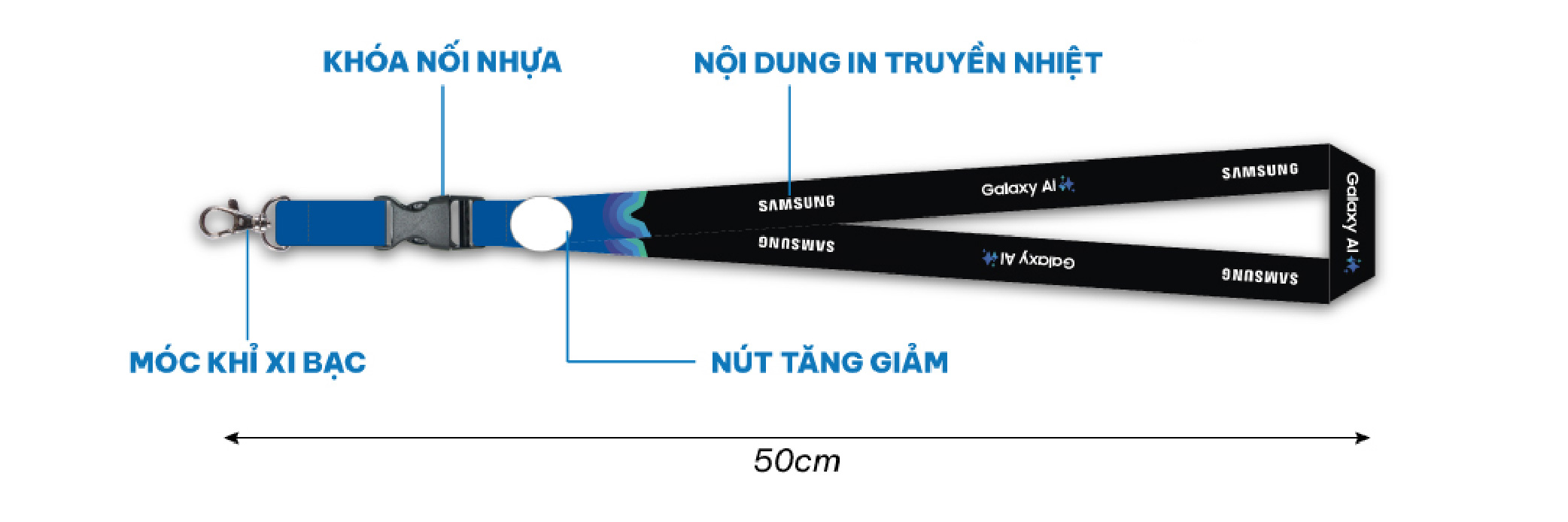 Mẫu dây SAMSUNG là một phụ kiện đa năng, được thiết kế để phục vụ lối sống năng động và linh hoạt, kết hợp giữa tính năng ưu việt và phong cách hiện đại. Tích hợp khóa nối để có thể tháo rời, tiện lợi cho người dùng. In được nhiều màu ở cả 2 mặt dây theo yêu cầu.