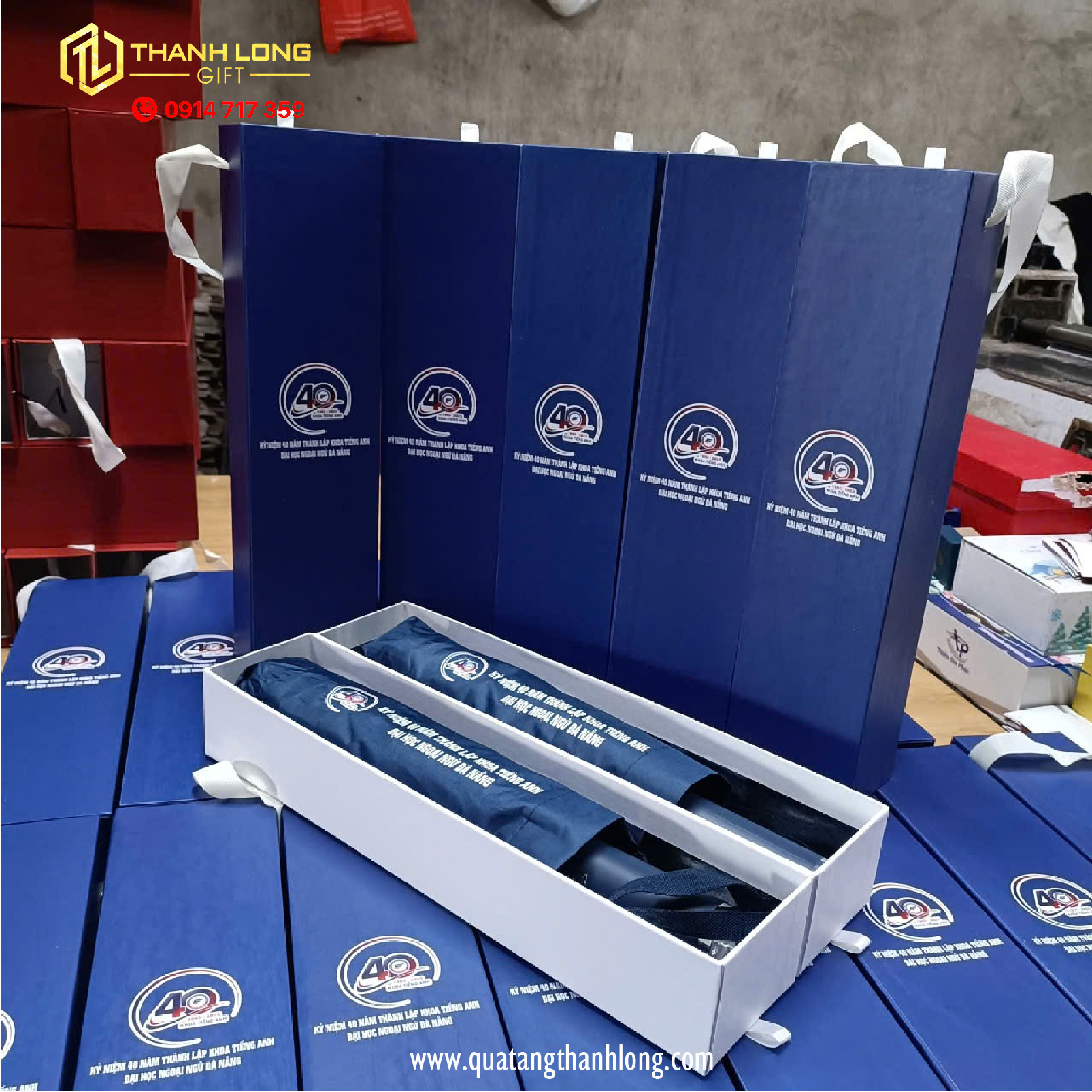 Trong các hoạt động truyền thông, sự kiện và tri ân, quà tặng luôn là cầu nối quan trọng giữa nhà trường với giảng viên, sinh viên, đối tác và các tổ chức quốc tế. Nhằm tạo nên những sản phẩm vừa mang giá trị sử dụng cao, vừa đậm dấu ấn thương hiệu, Trường Đại học Ngoại ngữ – Đại học Đà Nẵng đã hợp tác cùng Công ty Quà tặng Thanh Long triển khai dự án sản xuất dù cầm tay in logo và bộ hộp quà xách tay thiết kế theo yêu cầu riêng.