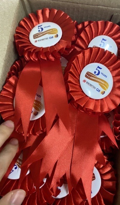 | Hoa cài áo đại biểu Màu sắc: đỏ, xanh dương, xanh lá, vàng Chất liệu: vải lụa + logo nhựa Đường kính hoa: 8cm |