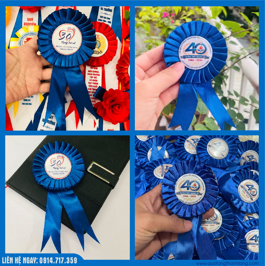 Hoa cài áo kỷ niệm 40 năm thành lập trường là phụ kiện trang trí nhỏ gọn, được thiết kế tinh tế nhằm tôn vinh cột mốc quan trọng trong hành trình phát triển của nhà trường. Sản phẩm thường được sử dụng trong các sự kiện như lễ kỷ niệm, họp mặt cựu học sinh, lễ tri ân thầy cô,…