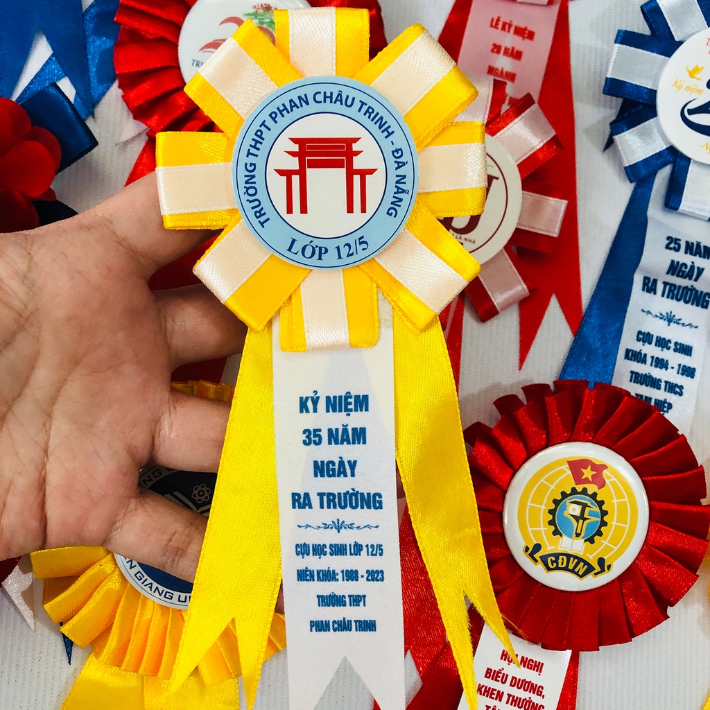 Chúng tôi nhận in theo yêu cầu của khách hàng: từ logo, tên sự kiện, khẩu hiệu, đến tên đơn vị tổ chức. Quý khách hàng có thể cung cấp logo của công ty, tổ chức hoặc bất kỳ hình ảnh nào mà mình muốn in lên hoa cài áo. Hình ảnh sẽ được in sắc nét và bền màu, đảm bảo chất lượng hình ảnh tốt nhất.
