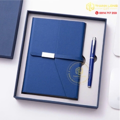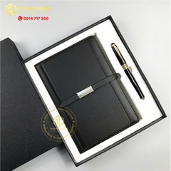 Chất liệu: Sổ tay bọc da cao cấp, bút kim loại bền đẹp, sang trọng.