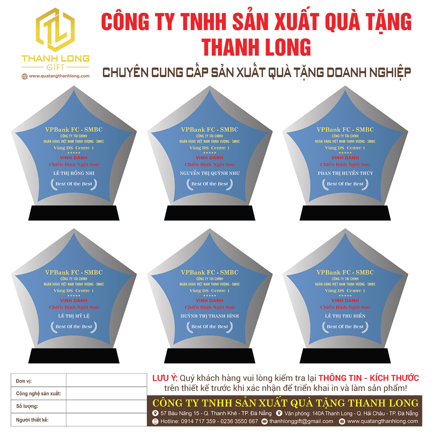 - In logo doanh nghiệp, nội dung vinh danh theo yêu cầu.