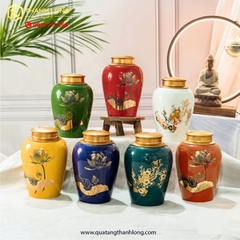 - Tên sản phẩm: Lọ Chè Sứ In Hoa Sen Ánh Kim