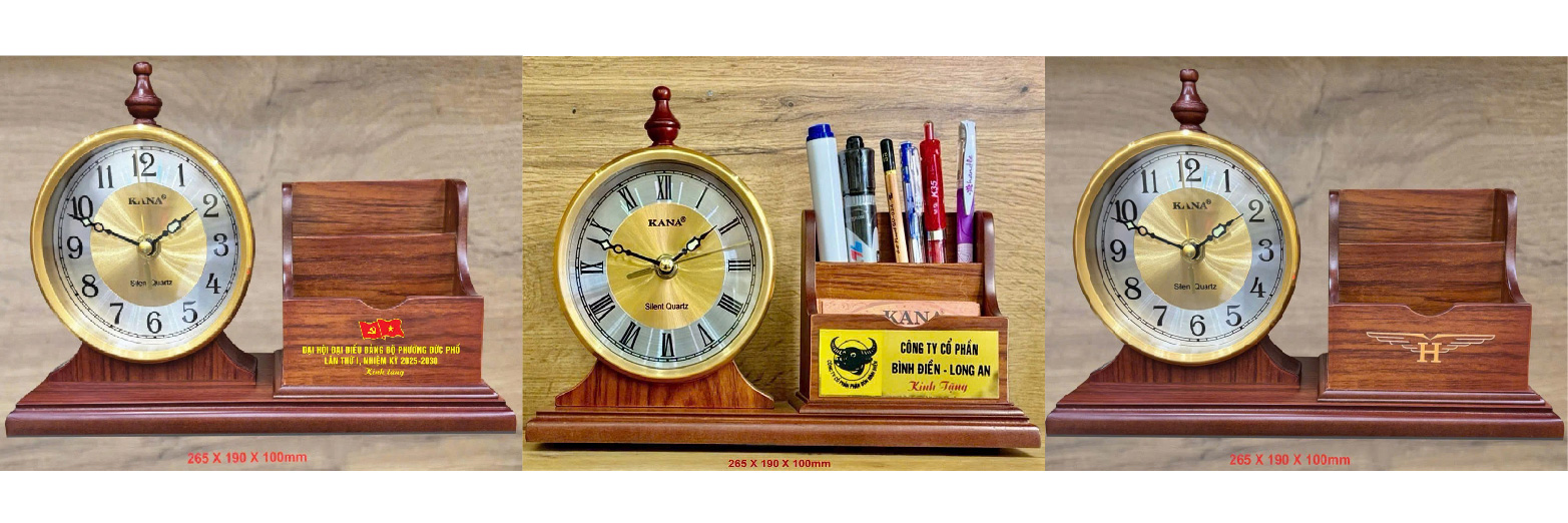 Đồng hồ để bàn kết hợp hộp đựng bút bằng gỗ Quà tặng dành cho Đại Hội
