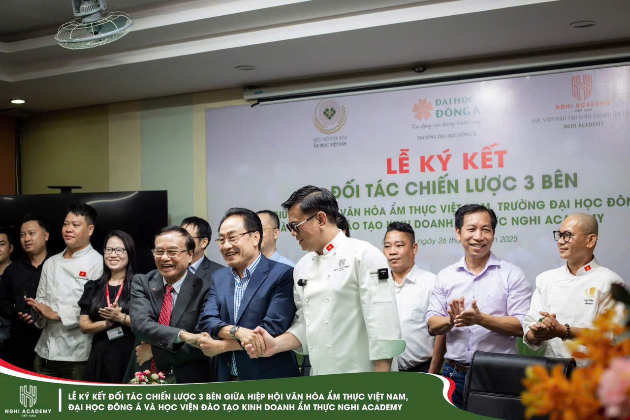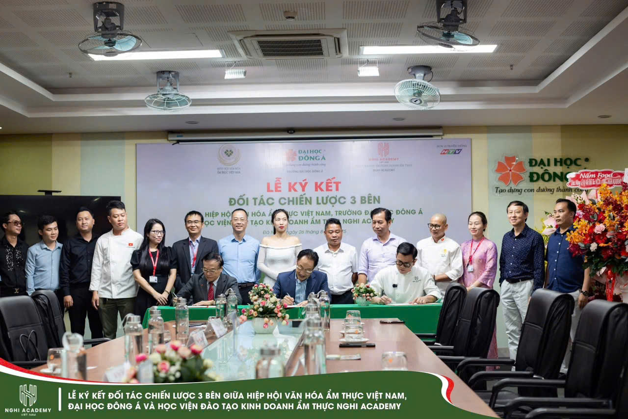 Ngày 26/8/2025 tại Trường Đại học Đông Á Đà Nẵng, đã diễn ra Lễ ký kết hợp tác chiến lược 3 bên giữa Hiệp hội Văn hóa Ẩm thực Việt Nam, Đại học Đông Á và Học viện Đào tạo Kinh doanh Ẩm thực Nghi Academy. Đây là dấu mốc quan trọng trong việc thúc đẩy phát triển nguồn nhân lực, quảng bá văn hóa ẩm thực Việt Nam và mở rộng hợp tác trong đào tạo.